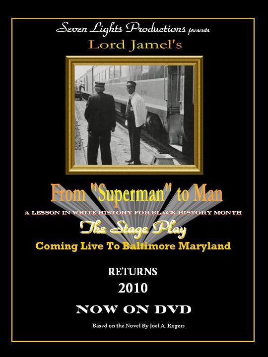 “From Superman to Man” is entirely based on the novel by famed author and self made scholar Joel A. Rogers. The play was written by Lord Jamel and had a short successful run for Black History Month in 2007. The play outlines the conversation between a lowly Black Porter and a racist whit bigot senator from Oklahoma. In this post WWII era of Jim Crow and lynching this well educated Black laborer destroys the illusion of superiority held by the senator in an overwhelming display of logic, compassion and knowledge of European literature. This book was so influential in its time that it was mandatory reading for all members of the original Constitution and By-Laws of Marcus Garvey's Universal Negro Improvement Association and African Communities League. Auditions are currently being scheduled for its debut in 2011 season.